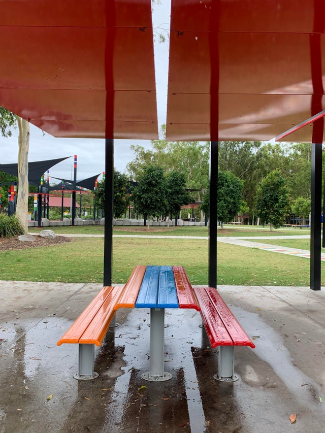 Стол для пикника поставили ровно так, чтобы на него попадал дождь