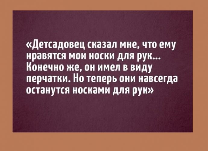 Детсадовец сказал мне, что ему нравятся мои носки для рук… конечно же, он имел в виду перчатки. Но теперь они навсегда останутся носками для рук.