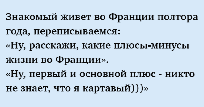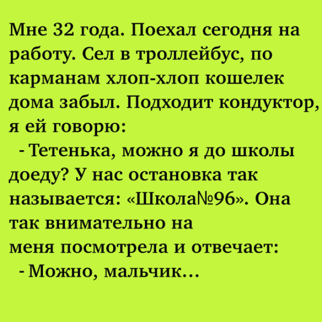 Курьезы Подборка шуток для отличного настроения Мы подготовили для вас новую подборку классных анекдотов! Для бодрого и позитивного настроя! Поехали! Источник ИнтересноОбществоРАЗВЛЕЧЕНИЯсмешное Как избежать скуки в браке: уморительные истории В мире больше доброты, чем мы думаем: вдохновляющие истории