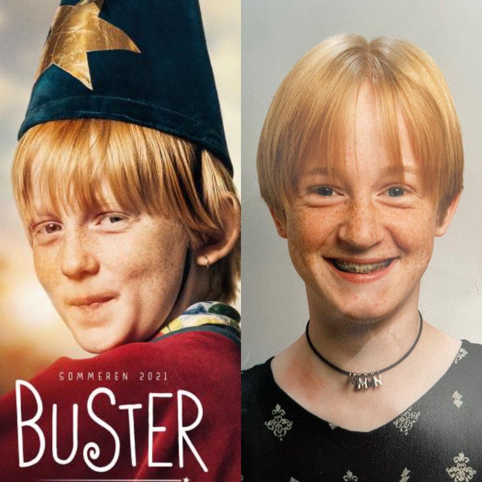 Слева постер нового детского фильма о мальчике по имени Бастер. А справа я в 13 лет, 1994 год