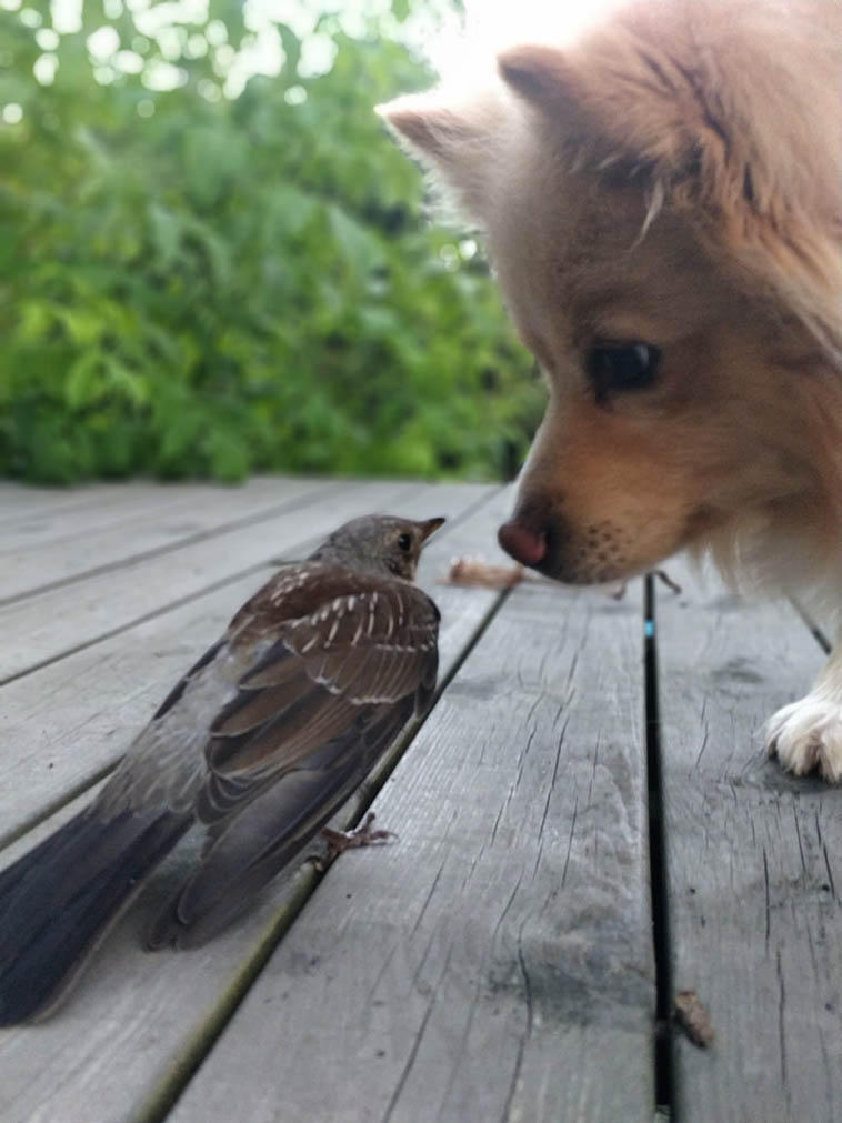 1. “Пока другие собаки гоняются за птицами, моя завела себе маленького пернатого друга”