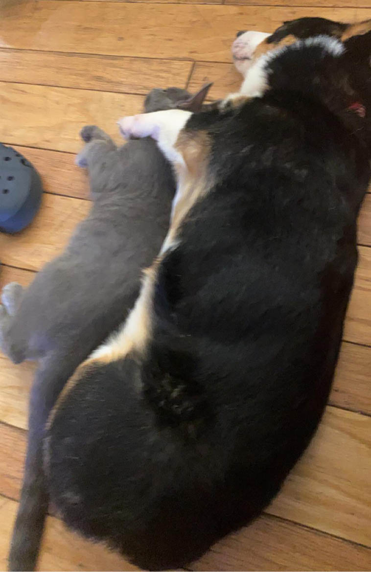 9. “Черный котенок только появился в нашем доме и знакомится с собаками, но я уже уверен, что это начало большой дружбы”