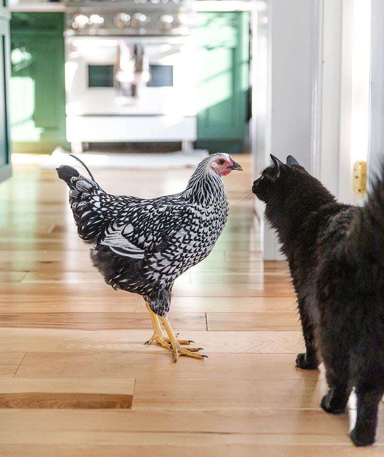 2. Еще один пример дружбы с пернатыми. На этот раз курочка подружилась с кошкой.