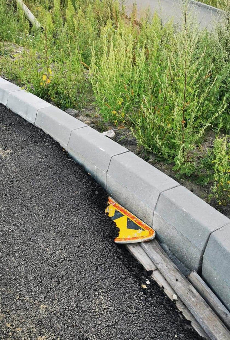 Так спешили сделать качественную, добротную дорогу, что даже про знак забыли. Ничего, так дорога ещё крепче будет.