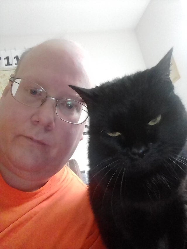 Я пытался сделать селфи со своим котом, но в итоге всё выглядит так, будто мы собираемся выпускать новый альбом.