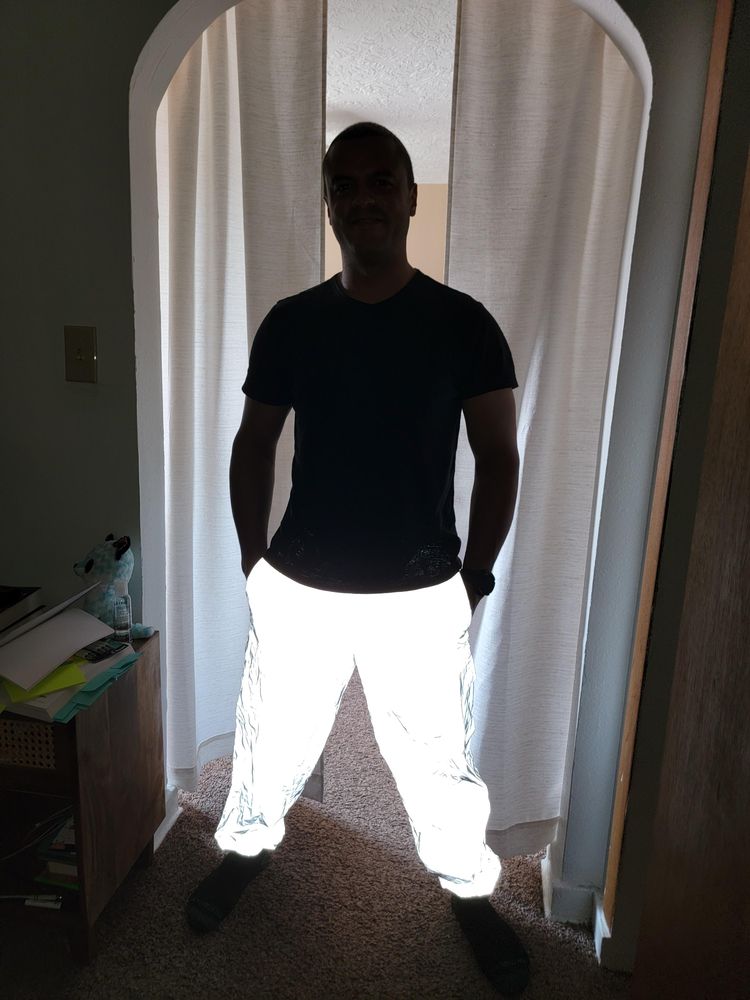 «Я нашел пару штанов „анти-папарацци“ в комиссионном магазине, которые обладают высокой светоотражающей способностью и портят фотографии при вспышке»