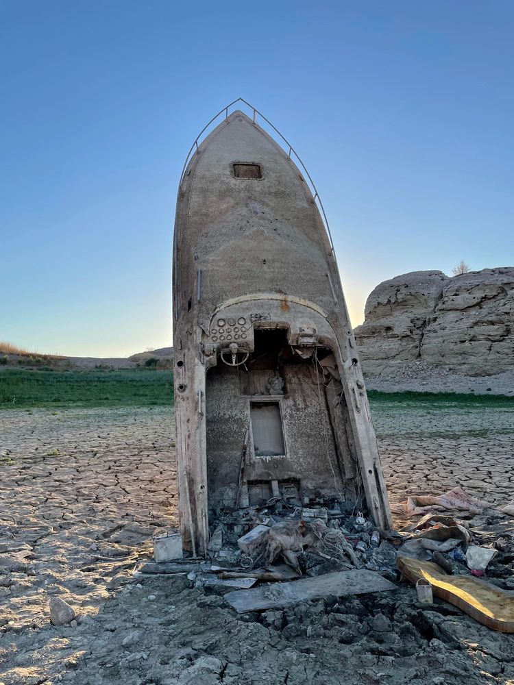 Уровень воды на озере Мид упал и кто-то нашёл лодку, которая когда-то скрывалась на дне