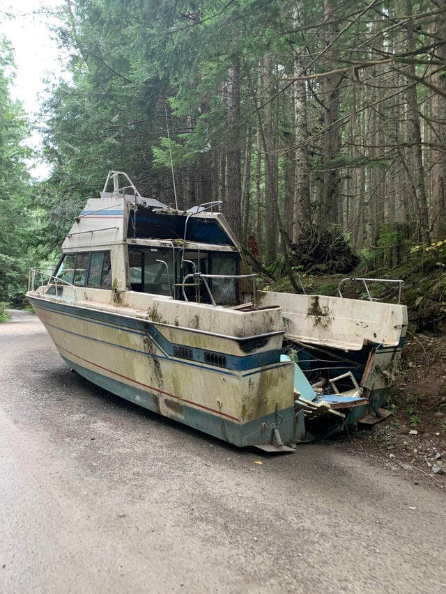 Брошенная лодка посреди леса в Вашингтоне
