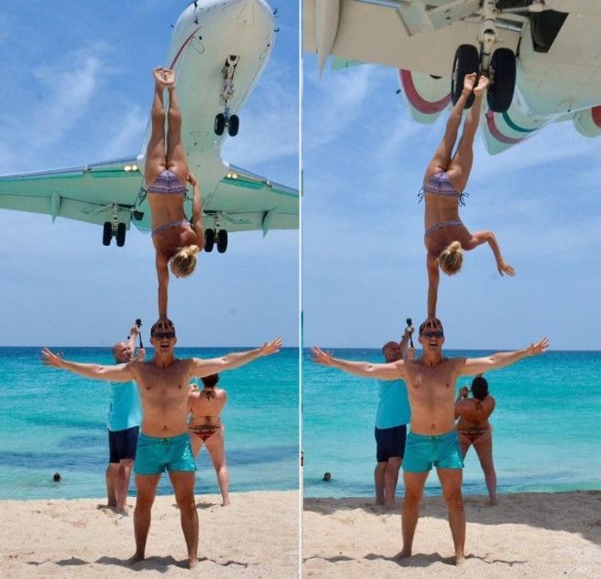 Будем надеяться, что это коварная перспектива и девушку не задел самолет