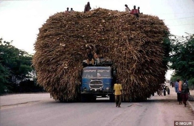 Эти фотографии поставили бы в тупик самого Исаака Ньютона. На них представлены транспортные средства, перевозящие такие большие грузы, которые, казалось бы, они перевезти просто не могут.