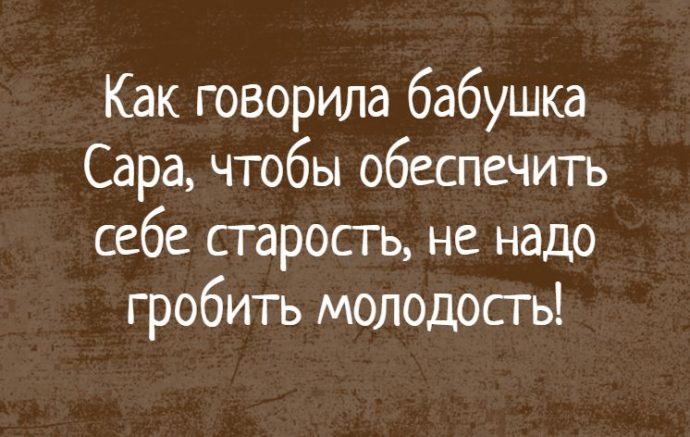 …чтобы обеспечить себе старость, не надо гробить молодость!