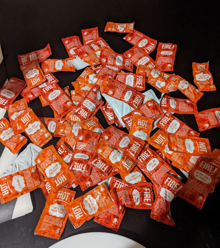14. “В моем заказе из Taco bell пакетиков с соусом оказалось чуть больше, чем я ожидала. А ожидала я 0, потому что просила их не класть.”