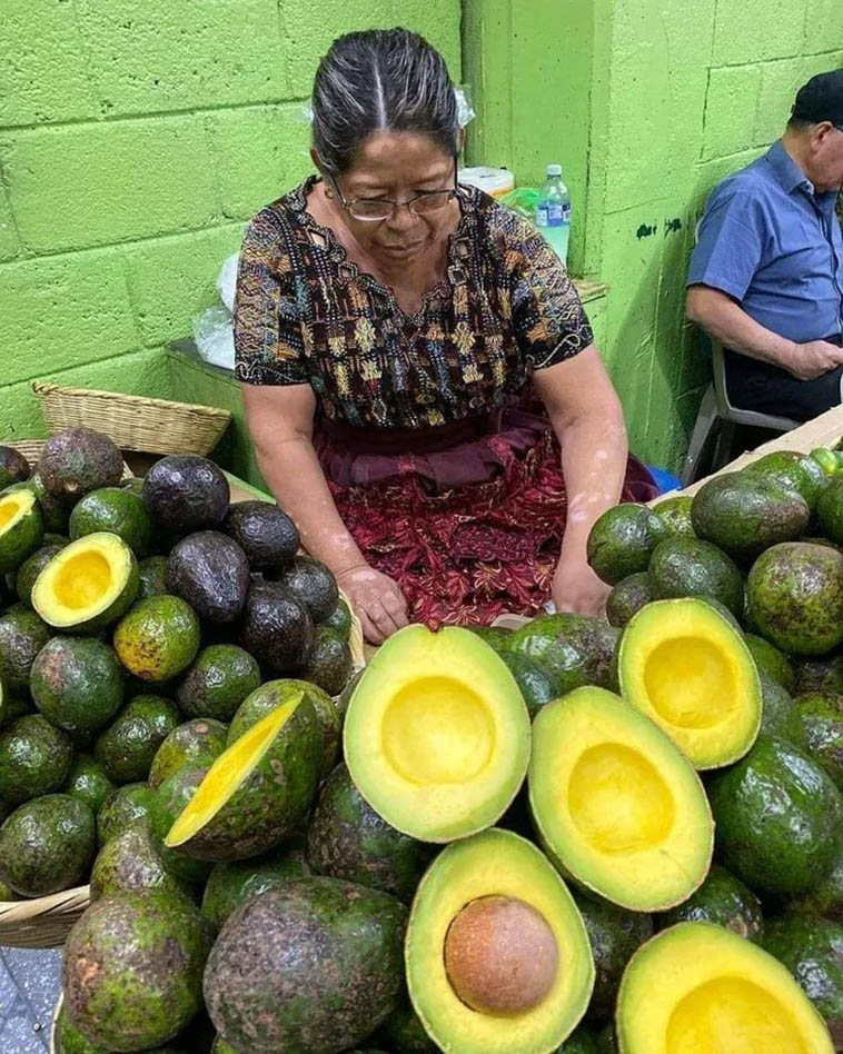 9. Авокадо настолько здоровенные, что их продают половинками. Похоже, что они размером с дыню.