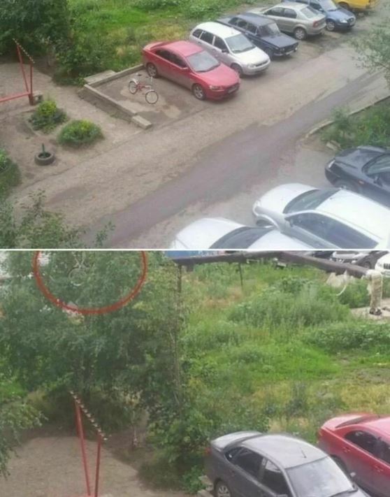 Этот метод — самый недейственный из всех. Как можно заметить, велосипед легко забрасывается на дерево, поэтому занимать место с его помощью не лучшая идея.