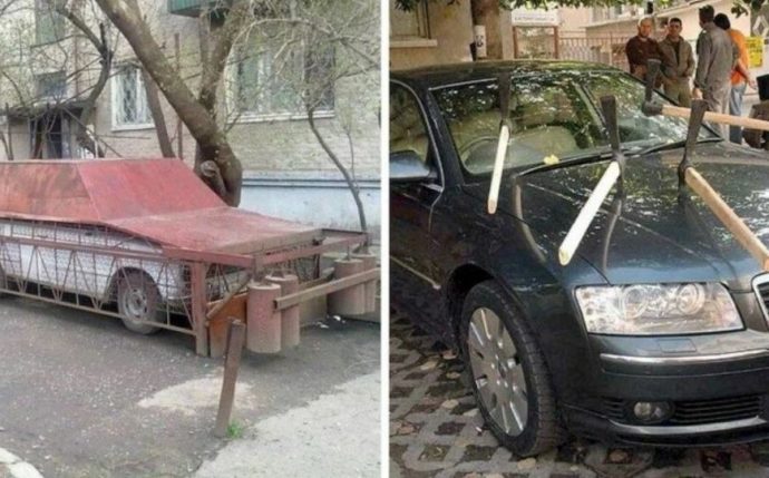 Сложности с парковкой авто возникают везде: и в центре города, и на его окраинах, около парков и рядом с жилыми домами. Существует масса способов защиты своего парковочного места от других водителей.