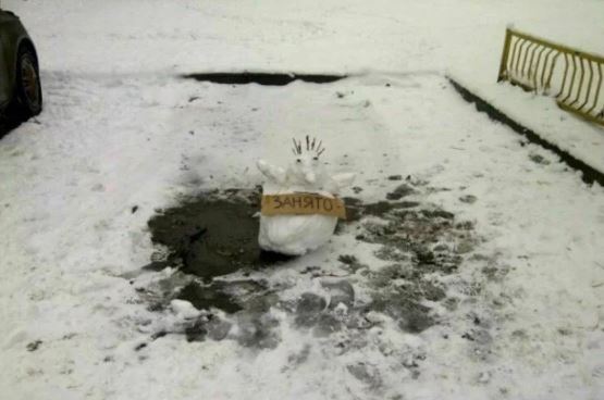 Это место занял снеговик на своем автомобиле, который, судя по всему, растаял.