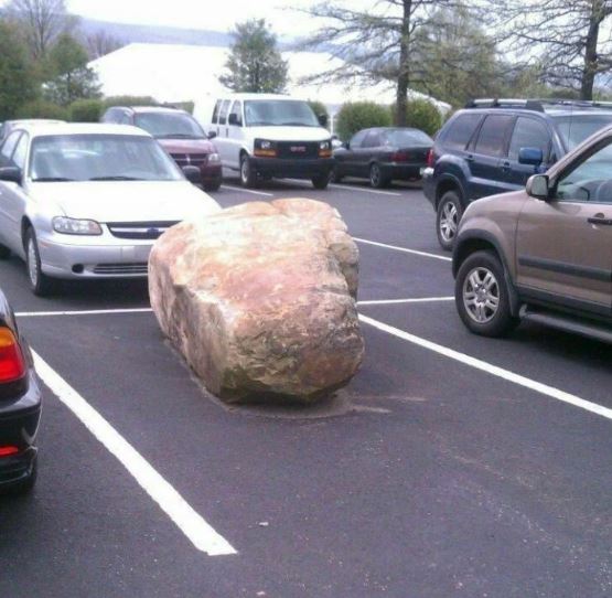Сложно сказать, как водителю удалось установить на место этот камень. Если у него хватает сил, чтобы двигать такие тяжести, стоит задуматься о поиске другого места.