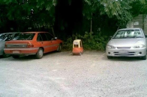 Место занято игрушечным автомобилем. Для вождения такого транспортного средства не нужны права, а вот парковочное место необходимо.