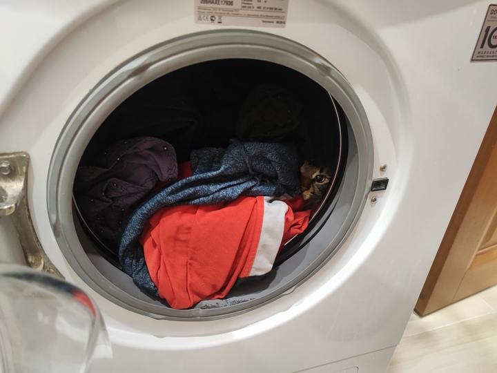 4. К сожалению, кошки не знают, насколько это опасно, поэтому часто прячутся в стиральной машинке