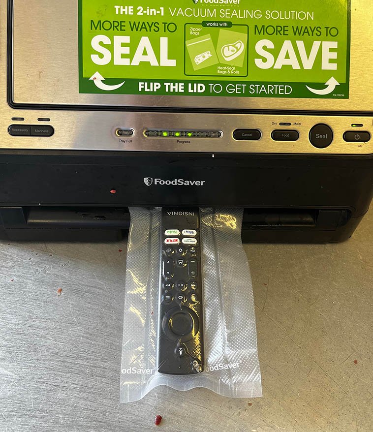 “Я беспокоился, что пульт от телевизора, который висит в помещении, где мы для кое-какого процесса постоянно используем несколько тонн соли, испортится, а потом придумал загнать его в вакуумную упаковку для мяса”