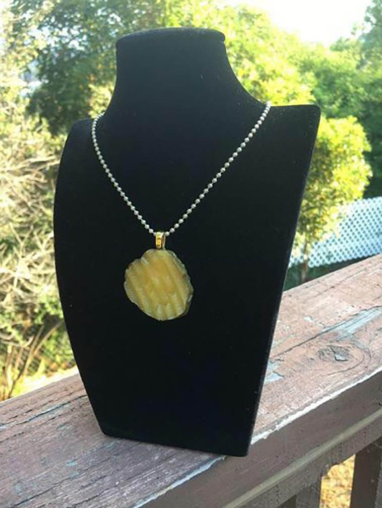 “Этот огурчик искусственный, но выглядит совсем как настоящий. С таким украшением внимание обеспечено на любом мероприятии.”