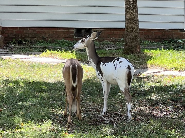6. “Только что возле моего дома прогуливались вот такие замечательные олени. У одного из них очень интересный окрас.”