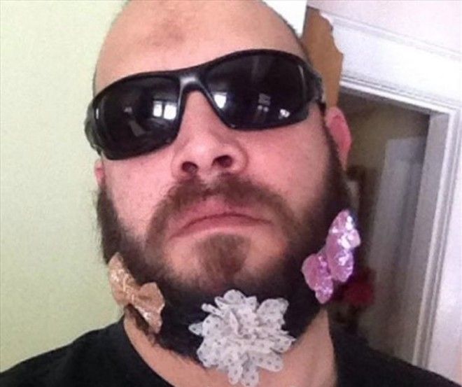 4.Смотрите, сколько брутальности придают розовые бантики этому бородатому мужчине