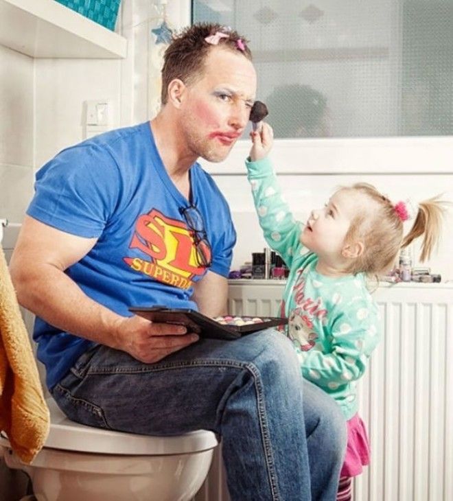 1.Этот отец позволил своей дочери сделать ему макияж. Когда девочка закончила, она сказала: «Папа, смотри, как мы похожи с тобой!»