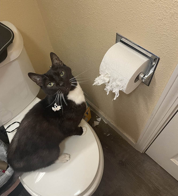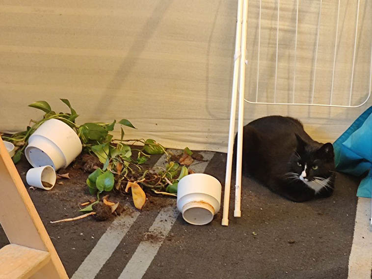1. Кот делает вид, что домом пронесся ураган, а он вообще не при делах