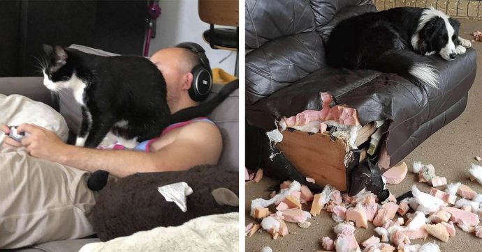 Некоторые выходки животных вполне безобидные, но бывает и такое, что слишком активная деятельность кота или собаки приводит к покупке новой мебели. Однако, как бы не шкодничали эти ребята, на любовь хозяев это никоим образом не влияет, ведь они души не чают в своих питомцах и готовы прощать им любую шалость.