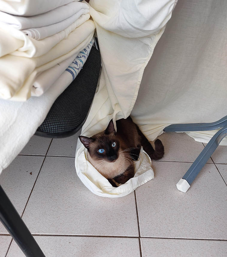 3. “Решила погладить постельное белье, но мой кот упорно не дает мне нормально погладить простыни”