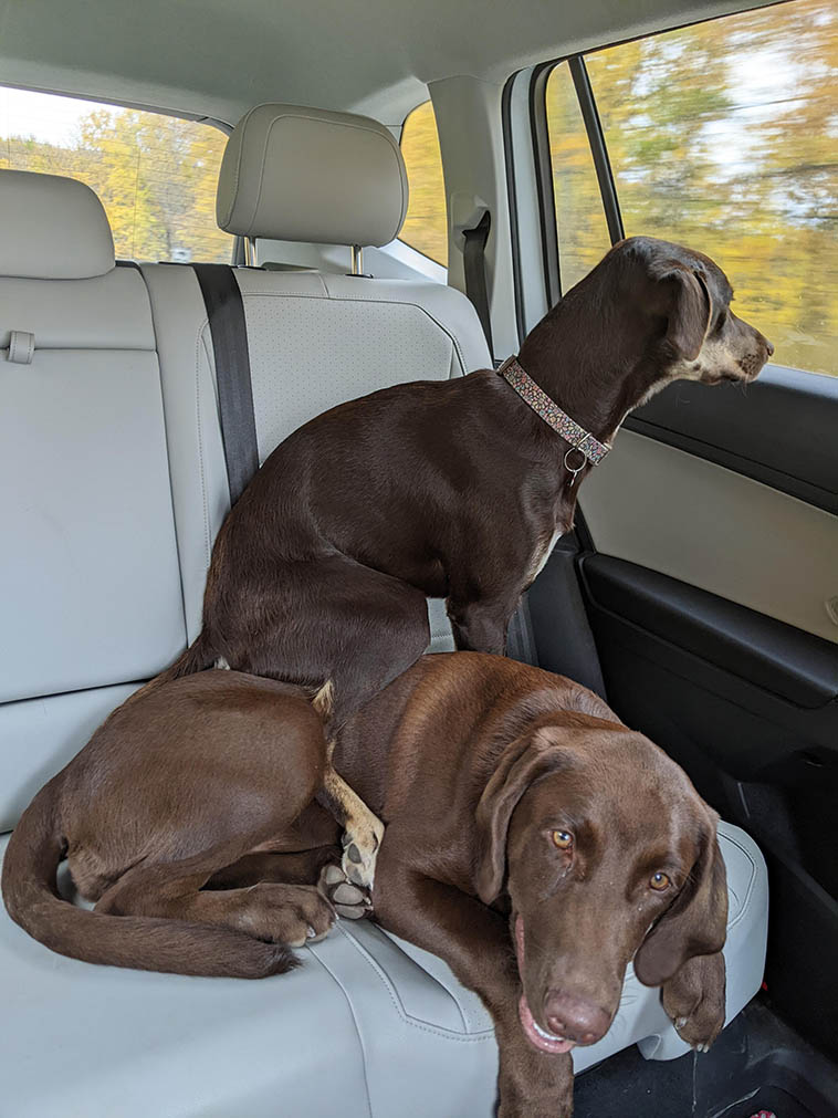 8. “Когда ты не только пес, но и удобная подставка для своего товарища. Они такое вытворяют каждый раз, когда оказываются в машине.”