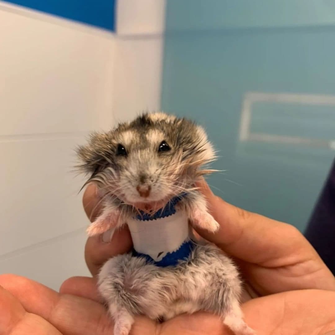 Ветеринары специально связали Пикси миленькую синенькую кофточку, чтобы он немного успокоился перед операцией.