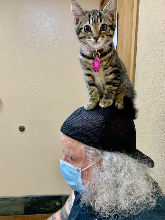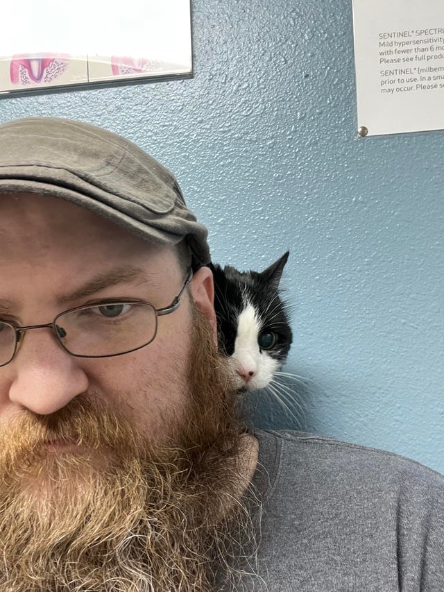 Мой папа сегодня на приёме у ветеринара со своим котёнком