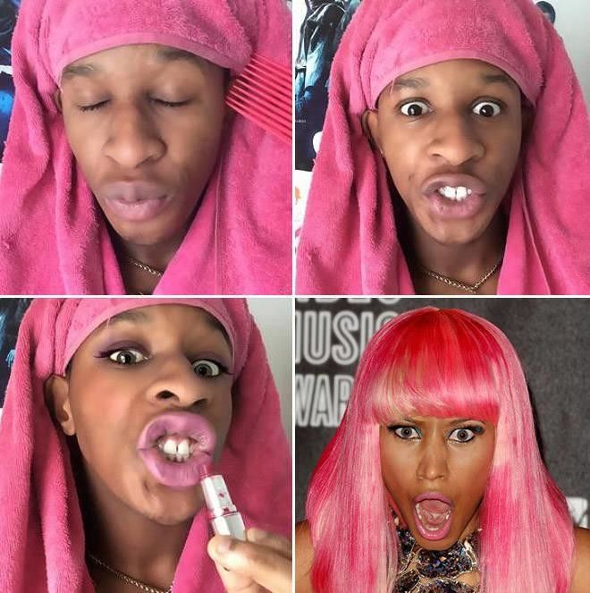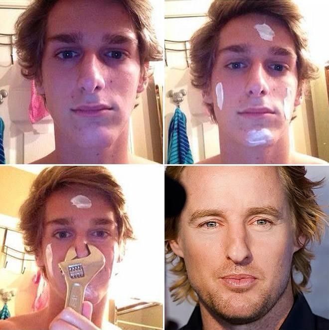 Как водится, в сети, над всем должно быть подшучено, поэтому пользователи запустили мем в рамках которого они превращаются в знаменитостей при помощи пары мазков крема и пары подручных вещей.