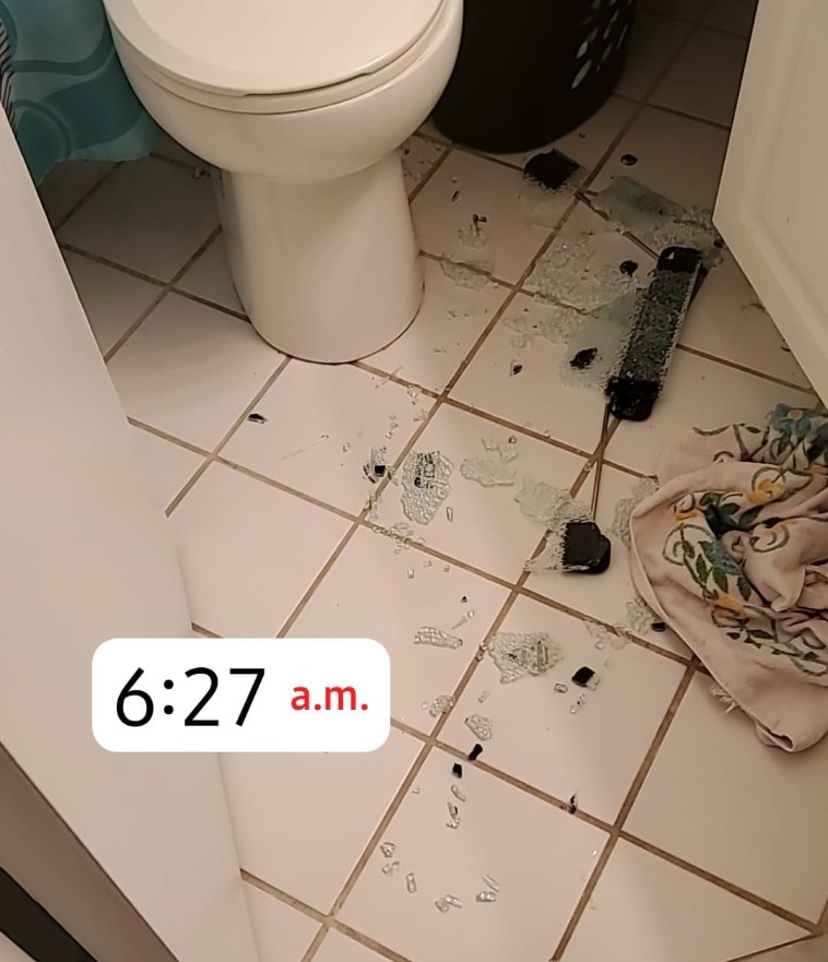 “Флакон одеколона выскользнул из рук. Нет, у меня был не гигантский одеколон, просто он упал на стеклянную раковину.”