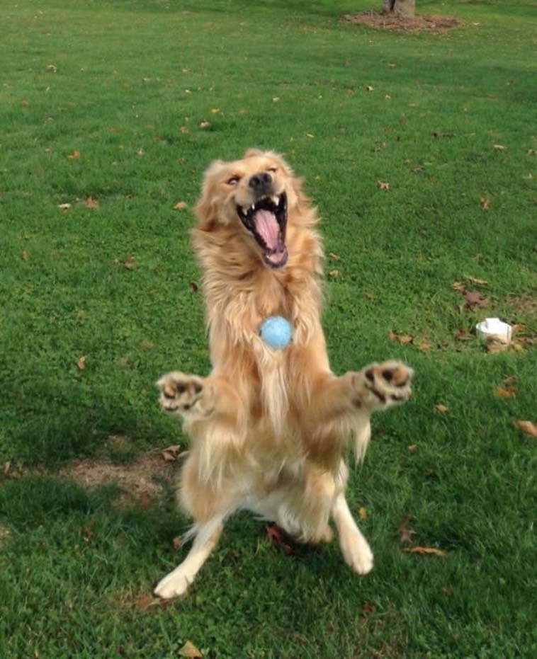 19. Момент, когда собака ловит мяч, на фото получился просто шикарным