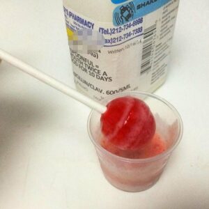 Окунайте леденец в лекарство, пока ребёнок не выпьет его полностью. Затем он сможет съесть конфету полностью.