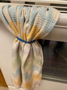 Наденьте резинку на висящее полотенце, если ваш ребенок имеет привычку стягивать его вниз