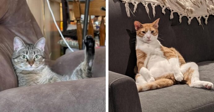 1. “Может это и выглядит немного странно, но для моего кота это обычная поза. Именно в таком виде он коротает время на диване перед телевизором.”