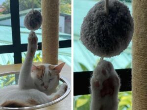 6. “Моя кошечка Лулу никогда не ищет легких способов, чтобы что-то сделать. И когда ей нужно умыться, он делает это вот так.”