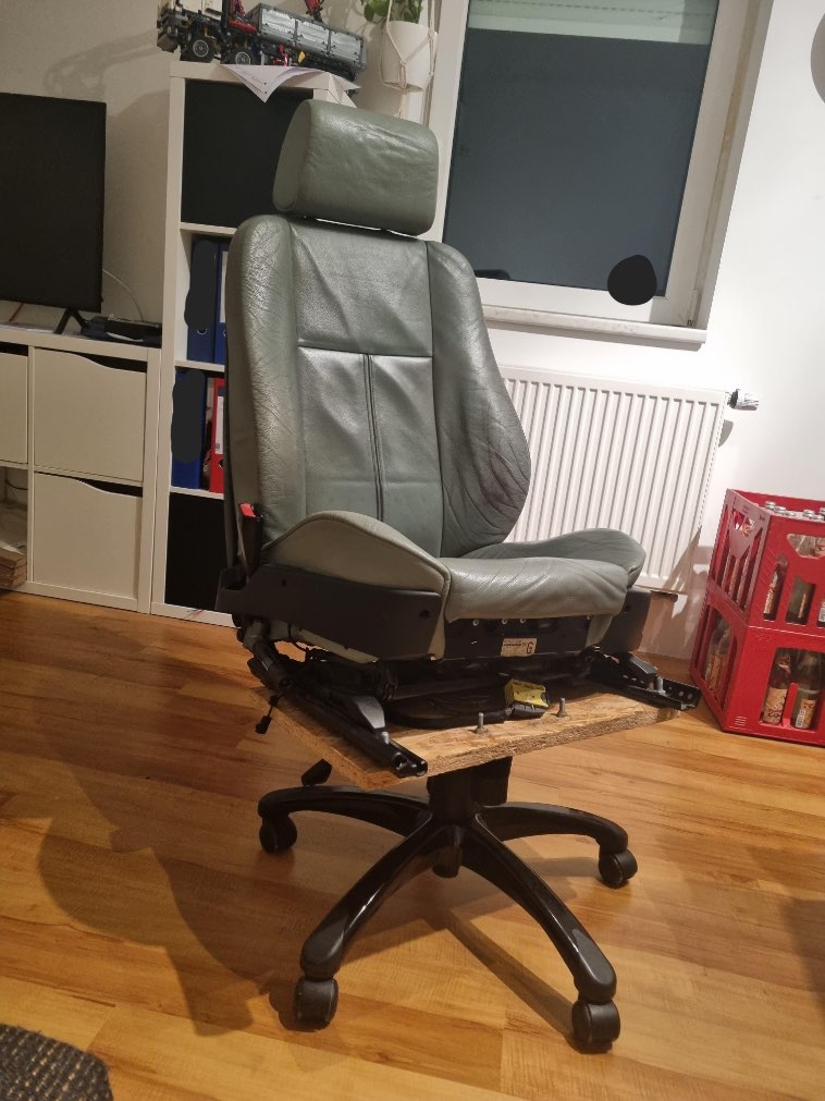 12. “Мое компьютерное кресло сломалось, поэтому я соединил его нижнюю часть с доской, а сверху прикрепил старую автомобильную сидушку, и в результате получилось вот это”