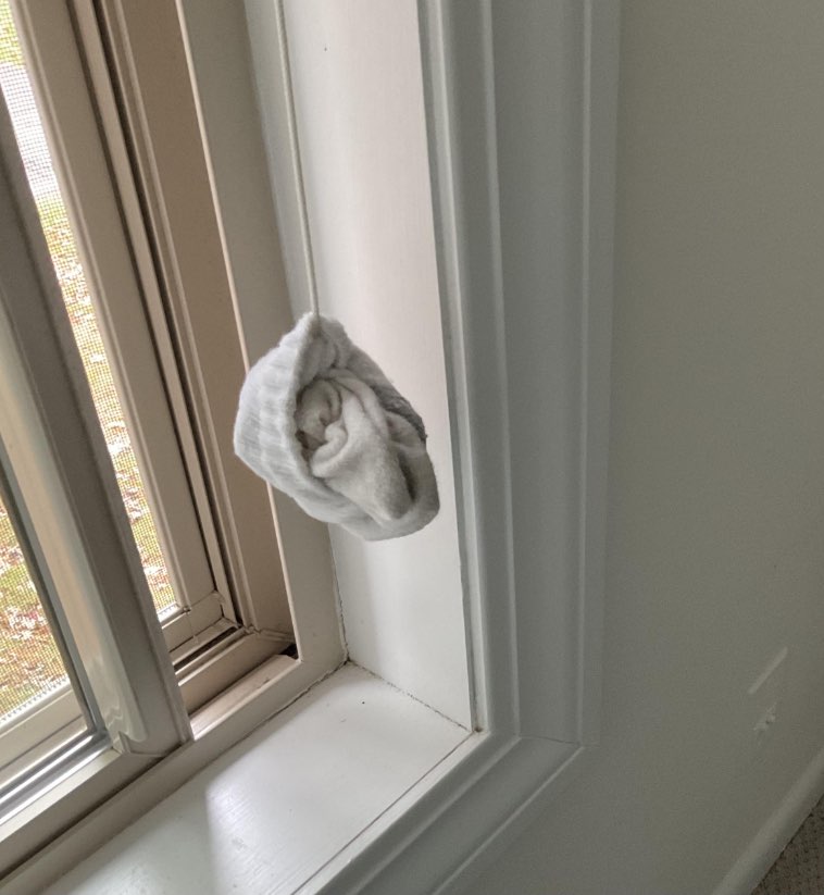 5. “Ночью из-за сквозняка шнур жалюзи постоянно стучал по раме, и я решила его немного усмирить с помощью старого носка”
