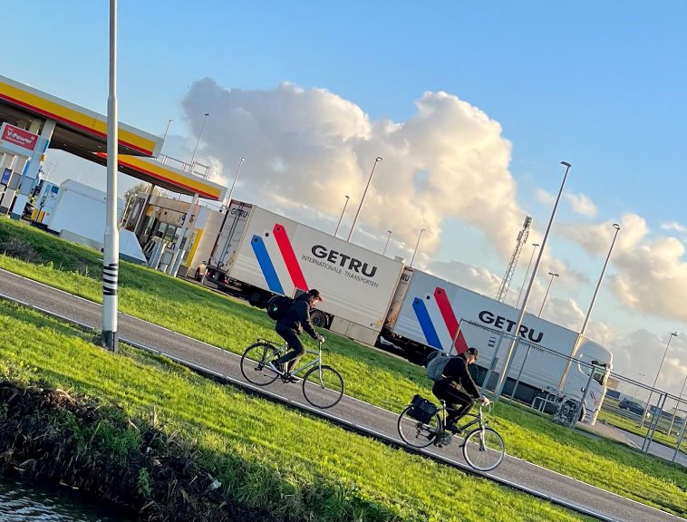 11. Полосы, нарисованные на фуре, выглядят как крылья на спине у велосипедистов