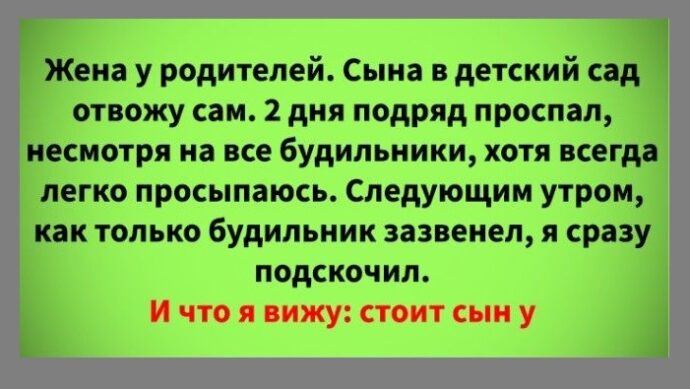 Жена у родителей. Обязанность водить сына в детский сад теперь лежит на мне. 2 дня подряд проспал сигнал будильника на телефоне, чтобы отвести его в садик. Раньше такого за мной не наблюдалось. Сегодня я понял, в чем дело. Ночью ложился спать, настраивая себя на то, что нужно встать вовремя. Как только будильник зазвенел, я подорвался в лучших традициях армейского подъема.