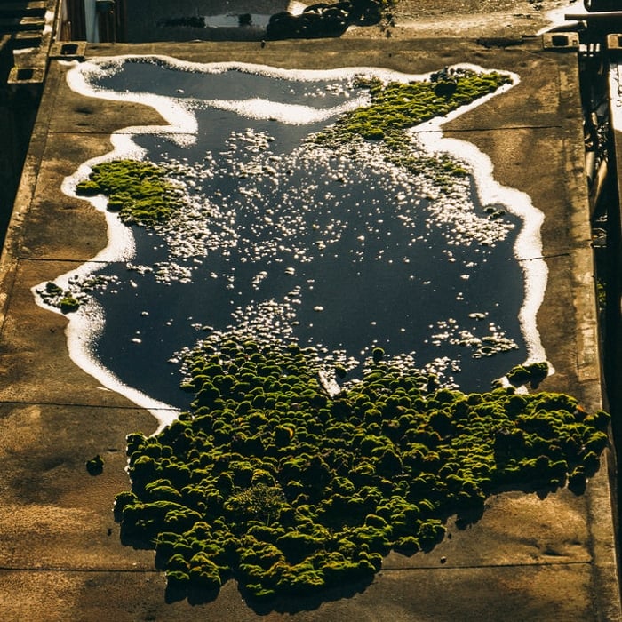 На самом деле это просто растаявшая лужа воды с мхом на крышке контейнера.