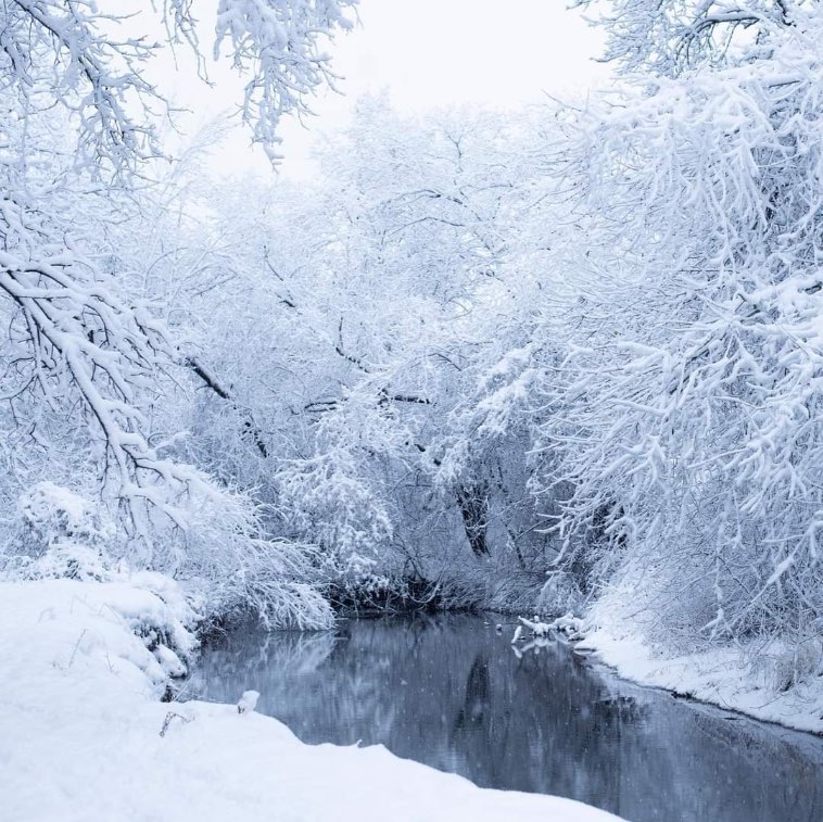 “Зима бывает суровой, но при этом невероятно красивой. Это ручей возле моего дома после снежной бури. Живу в Миннесоте.”