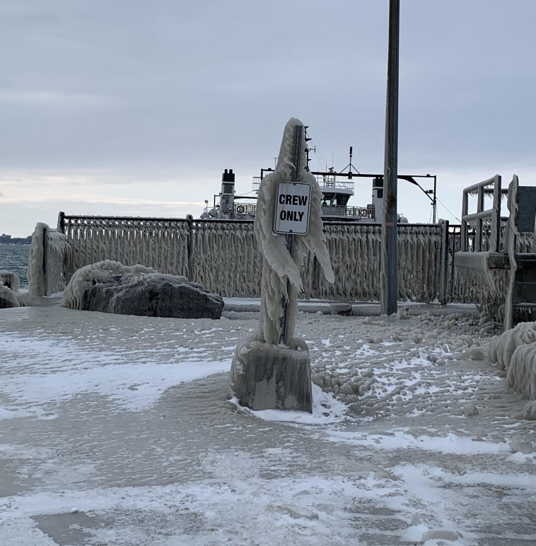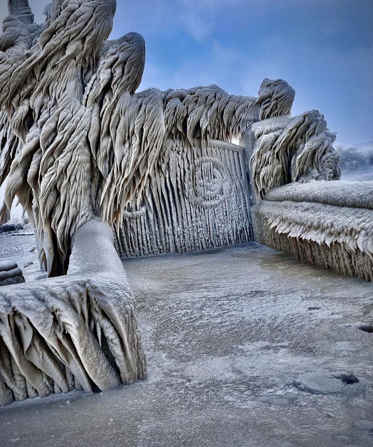 Вот такой лед образовался во время шторма на воротах пирса возле озера в Онтарио, Канада