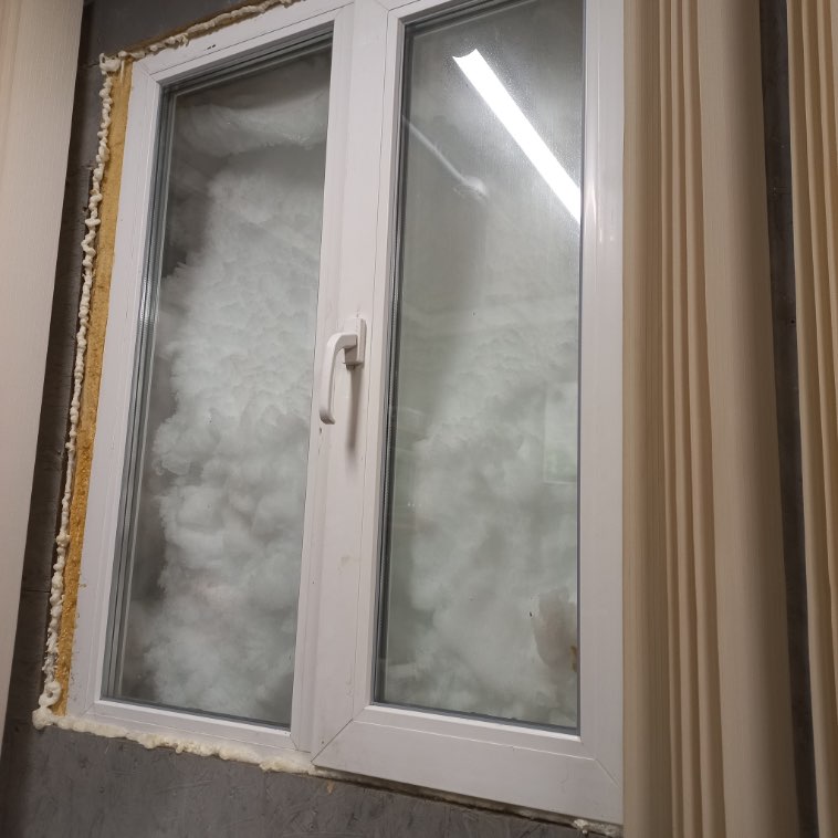 “Все мои окна с одним стеклом вот так замерзли сегодня. Как говорится, и страшно, и красиво.”