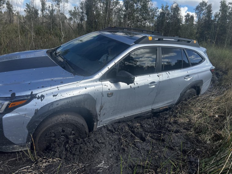 “Получил свою новую полноприводную Субару, и решил съехать на ней с дороги для небольшого теста проходимости. Буквально сразу же наглухо застрял.”
